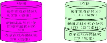 1 .在存储中划分8.3TB的存储容量,作为节目制作、编辑的区域,能够满足10天的节目/素材存储需求,并采用完全镜像的方式,以保证系统的安全性。即,当任意1套存储出现故障时,都不影响节目制作。
