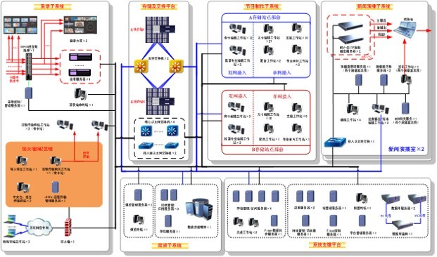 此次建设的SITV 全公司非编制作网络系统,要求是一个具有卫星信号收录、素材上下载、资源共享、文稿编辑、视音频制作、审片、演播室播出全数字化新闻非编网络系统,并同时提供灵活的工作流程管理及调整的模式。该系统以网络为纽带,通过新闻平台对于资源的统一调配管理,提高新闻节目采、编、播的效率。系统设计和设备规格应符合标清数字电视广播规范。系统可支持标清多种主流格式编辑;支持上海SMG电视台的节目收录和交换,支持新闻素材的远程网络传输,文稿系统应与视音频制作编辑系统有机结合;文稿系统与各通讯社、互联网站有良好接口;存储系统有极高的安全稳定性;新闻播出服务器(或工作站)有完善的备份措施; 新闻非编网络系统将支持新闻业务,为至少2个新闻演播室,多个栏目提供制作和播出平台,并能为新媒体的发布提供内容信息。
