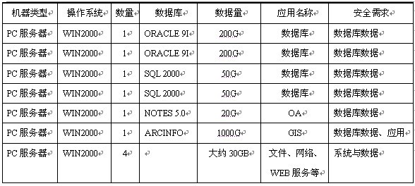 国土资源厅信息中心目前的计算机应用主要有后台数据库服务、GIS地理信息管理系统等等。对于核心数据的保护,目前仅通过对服务器硬盘做了RAID,起到防止硬盘故障的作用,服务器均为单机工作。用户数据库服务基于Oracle、SQL Server以及Domino。当前的存储都是直接连接到服务器本身的存储架构(DAS),该存储架构保证了高度的性能和低廉的价格,但在系统存储的扩充性、管理性以及数据的安全性上存在着无法克服的一些弊端。同时,由于数据分别存放,数据的备份管理工作也相当困难。目前的核心服务器单机工作存在着严重的单点故障问题,随时可能因为种种原因造成应用的停顿。因此国土资源厅信息中心希望通过数据和存储集中,建立核心数据库服务来解决现有数据库分散的问题。数据库整合后对于应用层面来说,中心数据库服务器的服务提供就相当的重要;而中心数据库的应用保护和数据安全保护问题也随之出现。目前,浙江省国土资源厅信息系统(含未来3-5年)将有以下服务器及数据库需进行数据安全存储备份保护: