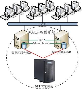 ·设备安装:每台服务器均有自已的磁盘,分别安装所需的操作系统和各自的应用软件,共享存储设备采用DFTraid5010磁盘阵列,将MS SQL数据库的库文件安装在阵列上。