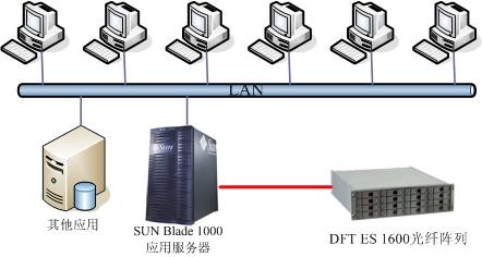存储系统中,采用 DFT ES-1600-FFX2全光纤存储产品,提供了超高性能、超高容量、超高可用性存储解决方案。该款存储系统消除了传统存储设计中时间、空间和成本等方面的限制,其提供了模块化、可扩展、无单点故障的解决方案并支持在异构SAN之上进行存储归并。良好的扩展能力为今后系统的平滑升级和能力提升预留了广泛的空间;同时也最大限度的保护用户的现有投资。
