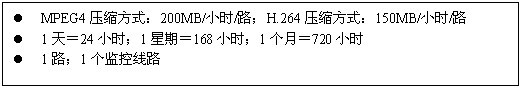 ·对存储的容量需求弹性比较大,存储容量的多少随着画面质量的提高、画面尺寸的增大、视频线路的增加都会成倍的增加容量需求。