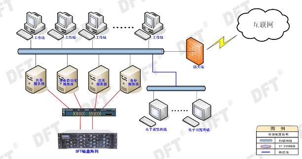 DFT提供的IP SAN存储解决方案,不仅提供了大容量的存储空间,同时保证了以后的容量扩展,实现了文化共享工程中大量数字资源的存储。同时通过IP SAN存储解决方案,可以让存储方便的接入到现有的网络中,减轻了管理和维护的难度。