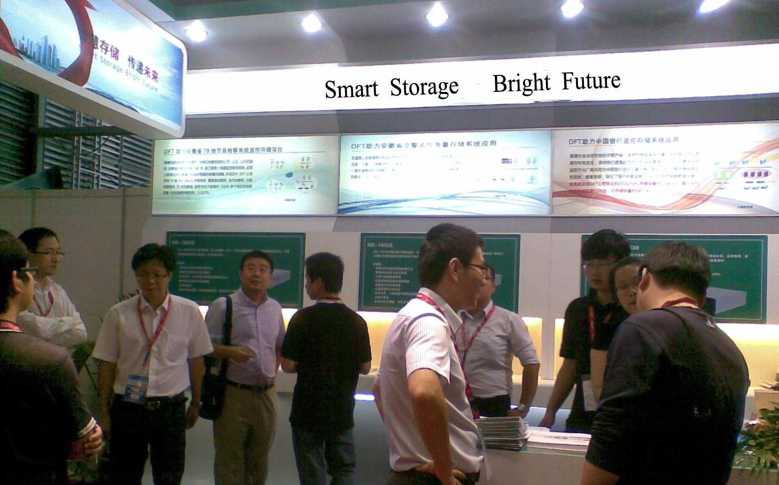本次展会,主要展示了DFT专业针对当前监控行业最新技术——网络视频监控的存储产品和成功案例,并以产品介绍、成功案例和设备现场观摩相结合的方式,立体化呈现DFT作为存储厂商在监控行业中的实力和影响。DFT展馆分为成功案例展示区和品牌展示区两大展区,分别展示了DFT最新的代表性成功项目、NS系列、RS系列产品以及DFT企业概况和雄厚实力。此外,DFT自主研发的产品——ES系列也是本次DFT展馆的重点内容。DFT ES系列磁盘阵列是具备企业级数据保护功能的虚拟化网络存储系统,实现了集成数据保护、虚拟服务器整合应用等创新功能,能够为数据中心的商业应用提供高可靠性和高可扩展性。