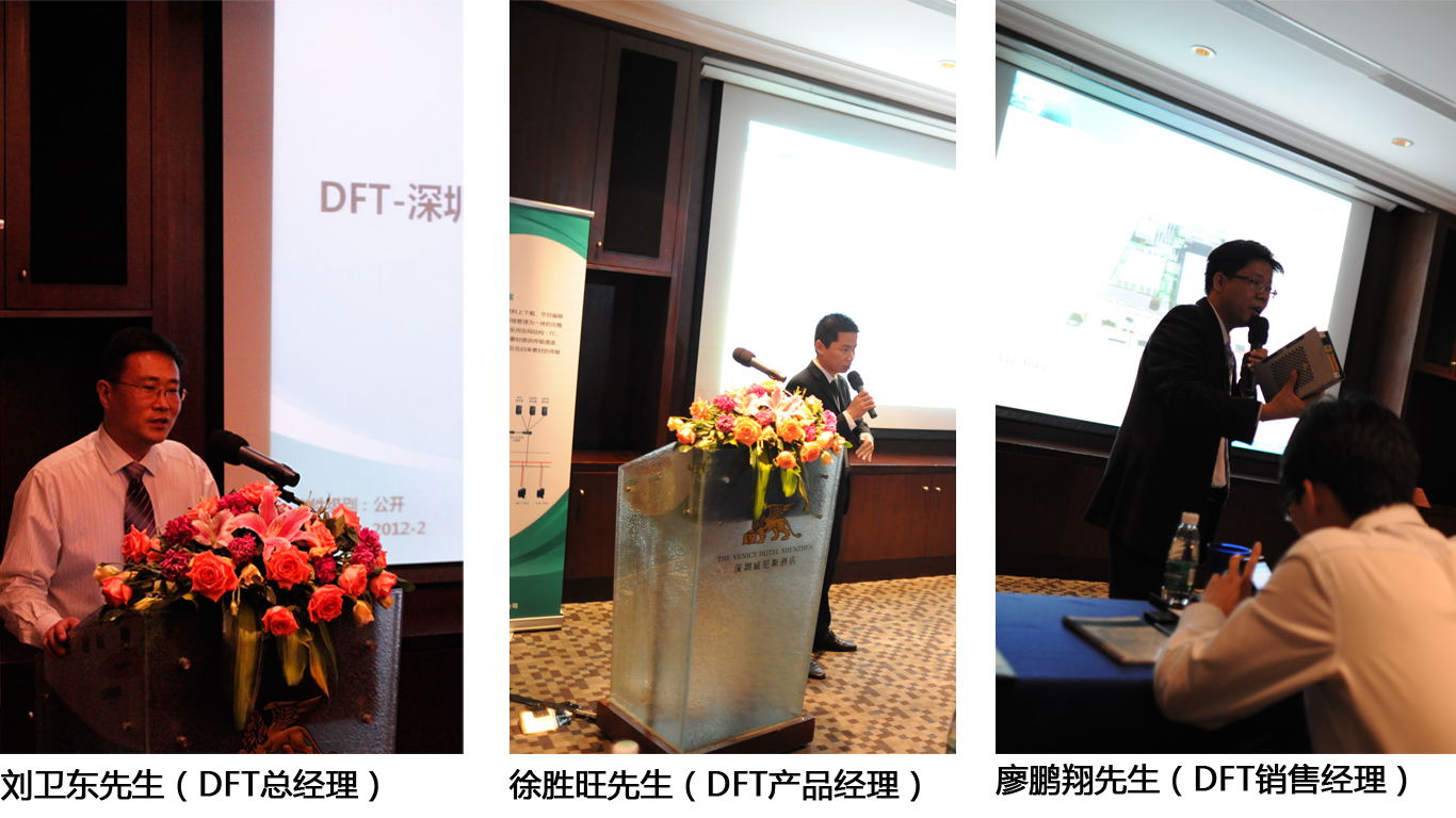 会上,DFT总经理刘卫东先生首先向现场嘉宾和合作伙伴致了辞欢迎,并介绍了DFT公司。随后,针对客户应用和行业热门技术,DFT产品经理向现场嘉宾介绍了目前行业基本的存储技术;详细展示了DFT丰富的产品线,重点介绍了DFT ES和NS产品功能、特色以及方案,其中包括ES6015全解决方案(医疗行业)、虚拟化解决方案、双机双柜高可用解决方案、数据块级的备份解决方案、Windows文件备份+远程备份解决方案、远程备份解决方案、灾备整体解决方案等十来个解决方案;并与现场嘉宾一起分享了DFT广电、安防、政府、教育等多个行业的成功案例。