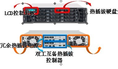 RS 3000i存储设备由电源模块、控制器模块、设备基本模块单元组成,基于ASIC架构下系统所有组件全部采用模块化设计,实现系统组件故障时的快速更换,部件的故障不会影响设备的正常运行,同时模块的热插拔冗余设计,减少了设备的维护时间;